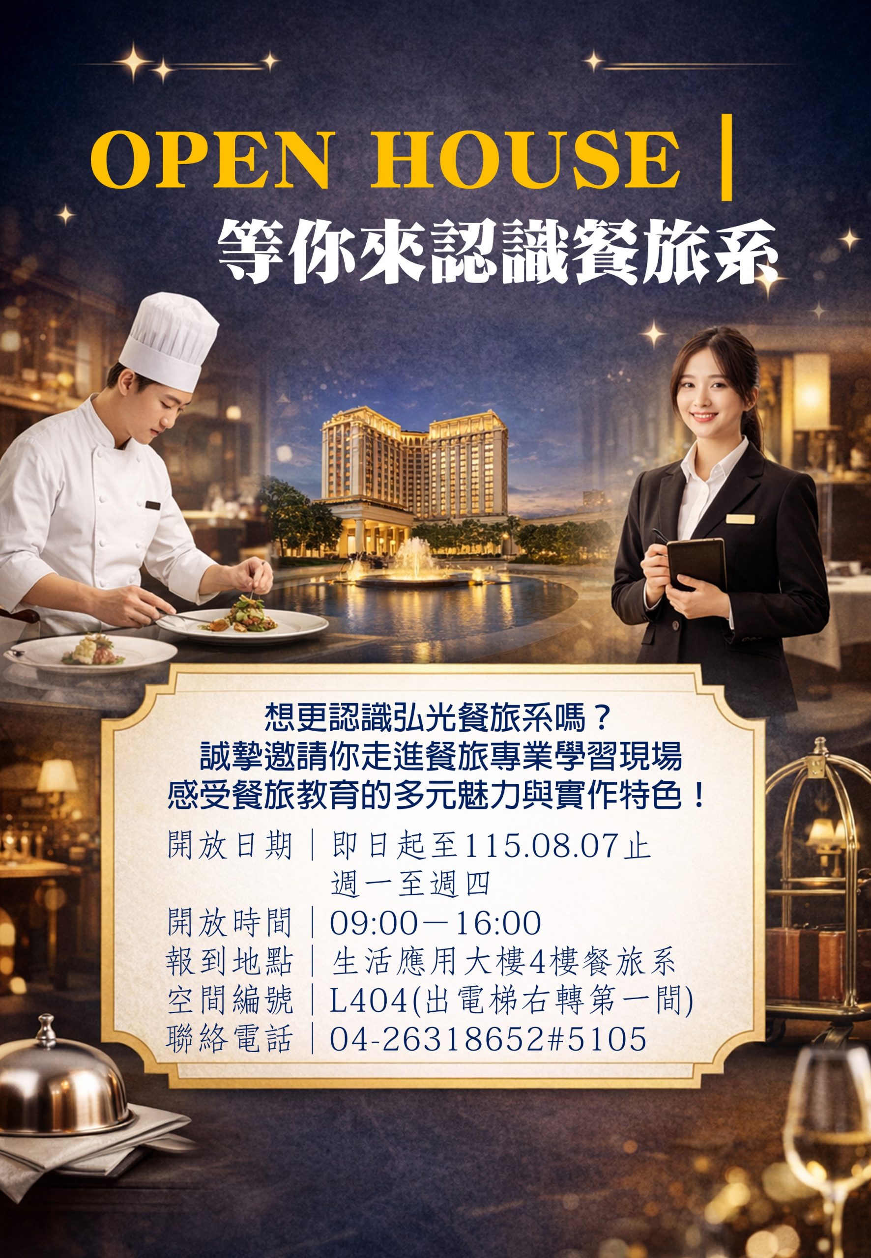 公告【餐旅管理系】OPEN HOUSE| 等你來認識餐旅系 – 招生策略中心